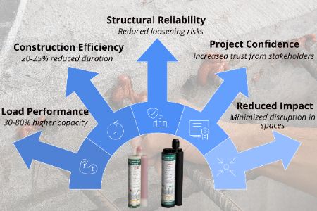 To meet both structural safety and construction efficiency requirements, the project team selected - GU-500SD Epoxy Chemical Anchor